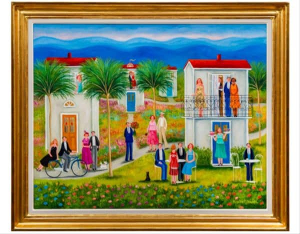 Pernilla P. Stappe (born 1967) is a Swedish painter known for her colorful, narrative scenes that evoke fantasy and joy. She primarily works in oil and gouache, creating “snapshot”-like compositions inspired by social interaction, celebrations, and everyday moments. Her art radiates warmth, love, and an idyllic, uplifting world.